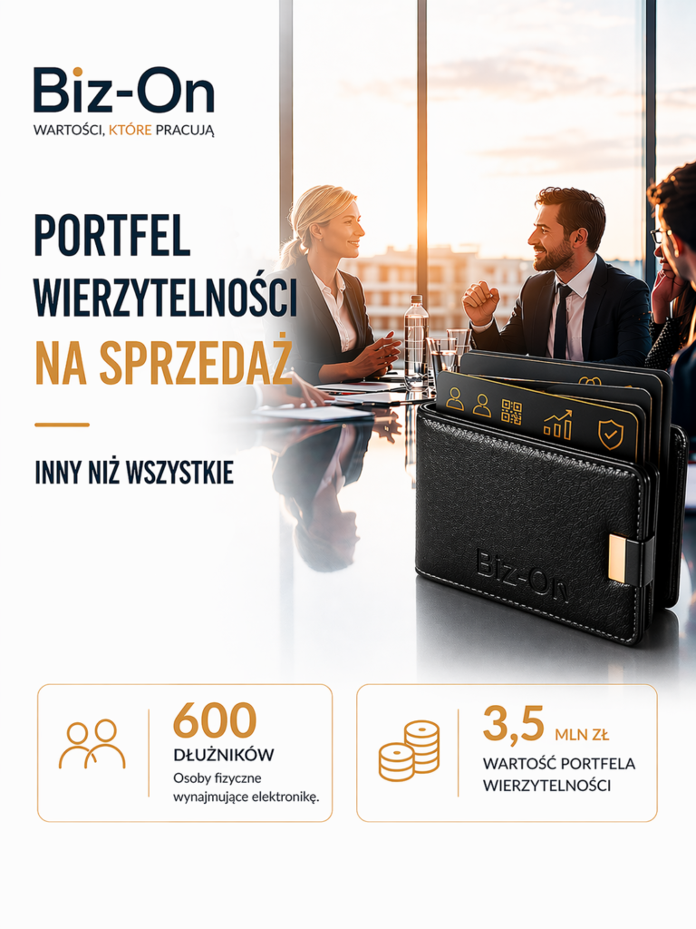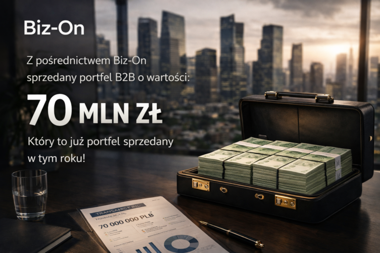Z wielką radością i dumą Biz-On informuje o sprzedaży portfela z rynku B2B Warość portfela to ponad 70 MLN ZŁ. Jak zwykle Biz-On dziękuje za